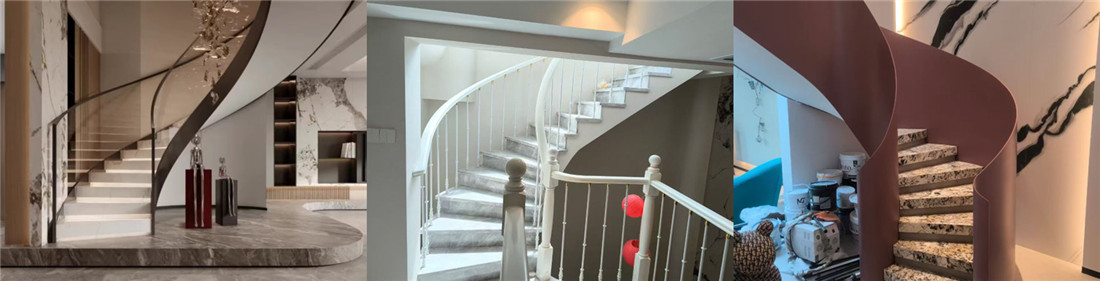 - **别墅楼梯改造**:替代传统直线楼梯,通过旋转设计让客厅更显通透,转角平台可作为临时阅读角或展示区。
